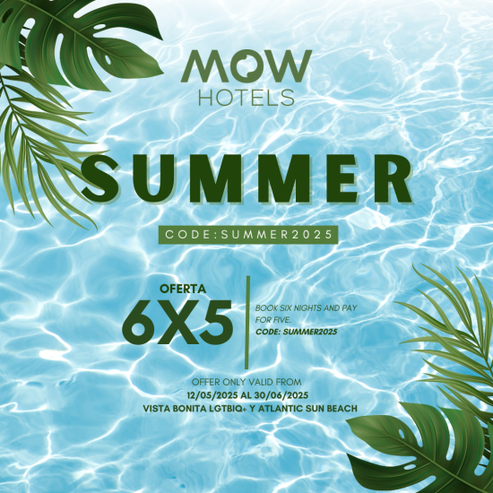 Stay with us 6 nights and pay 5! Use the code SUMMER2025 when booking and enjoy an amazing stay in two of the best hotels for the LGTBIQ+ community.