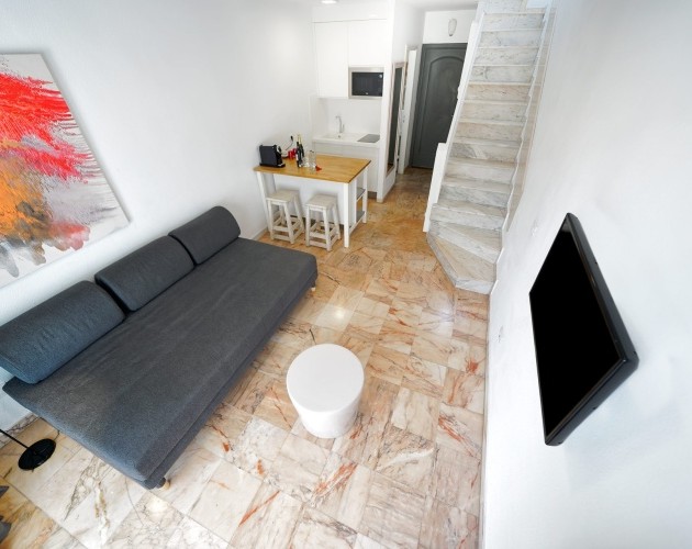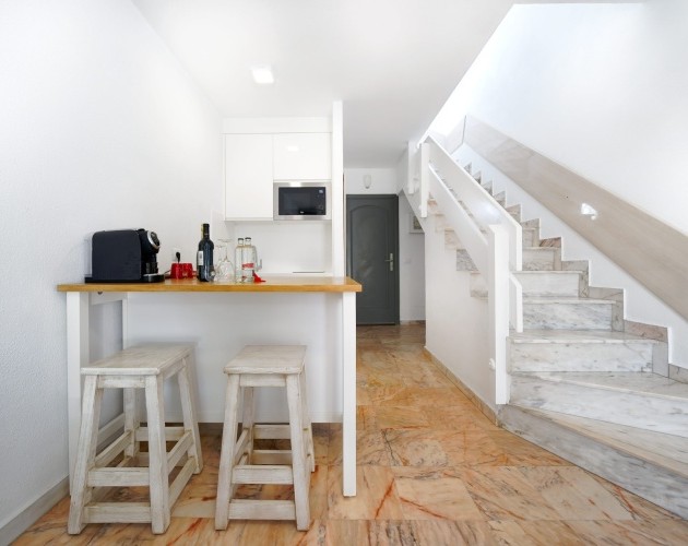 The standard duplexes consist of an open plan lounge and kitchen area. The lounge opens out on to a terrace. The kitchen is equipped with an electric hob, electric kettle, microwave fridge and toaster.