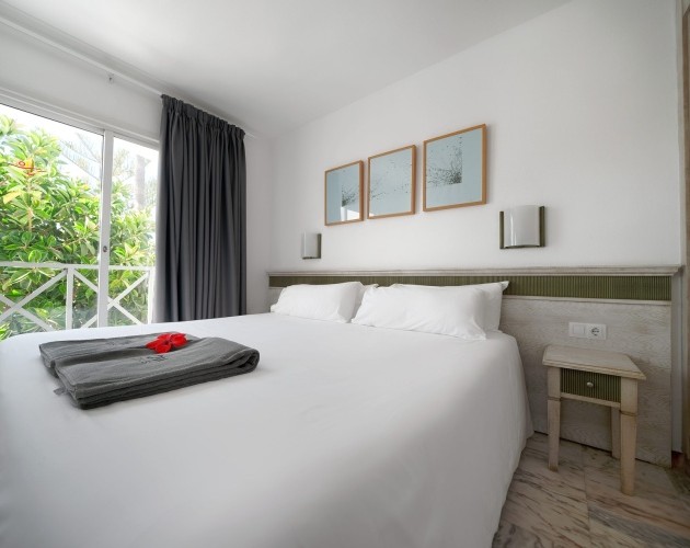 On the first floor is the bedroom (with double bed or twin beds) with its own balcony overlooking the resort and a full bathroom with shower, hair-dryer y magnifying mirror.